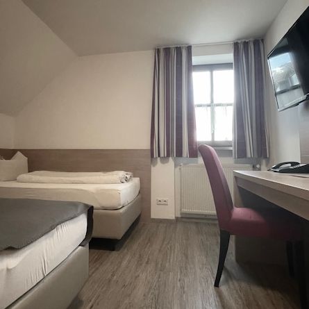 Genießen Sie Ihren Aufenthalt in unserem gemütlichen Zweibettzimmer im Gasthof Hotel Langenegger in Weichs. Entspannen Sie nach einem ereignisreichen Tag in komfortabler Atmosphäre.